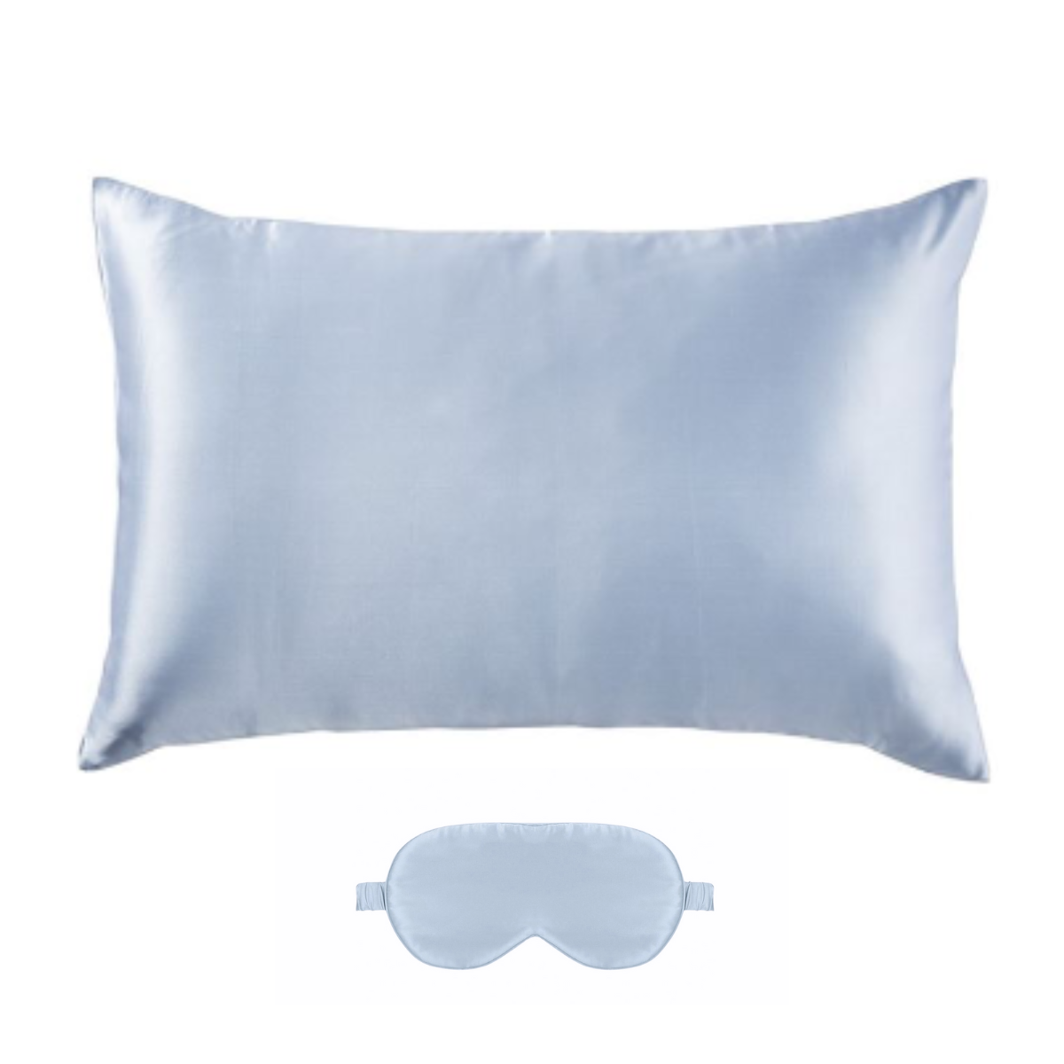 Față de Pernă din Mătase Naturală Zipper | Mulberry Silk 19 Momme | Baby Blue 50 x 70 cm + Mască de Dormit Cadou